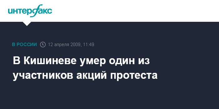 Кишинев. 12 апреля. INTERFAX.RU - В воскресенье скончался 23-летний Валерий Бобок, который принимал участие в акциях протеста в начале недели. Его родители сообщили журналистам, что "после акций протеста он был арестован, полиция избила его, в результате чего он скончался".