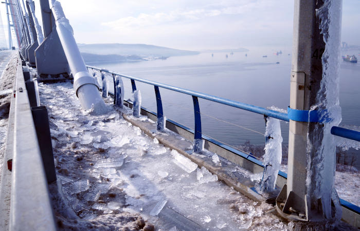 Глава Минвостокразвития Алексей Чекунков в пятницу сообщил журналистам, что в мировой истории не было случаев обледенения вантовых мостов после ледяного шторма, случай с мостом на остров Русский - уникальный.