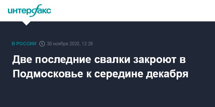 Москва. 30 ноября. INTERFAX.RU - На следующей неделе в Московской области закроются две оставшиеся мусорные свалки, сообщил губернатор региона Андрей Воробьев.