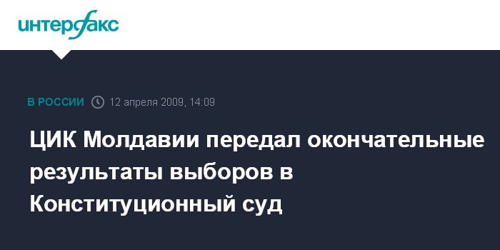 Кишинев. 12 апреля. INTERFAX.RU - Центризбирком передал в воскресенье окончательные результаты выборов 5 апреля в Конституционный суд Молдавии, сообщили "Интерфаксу" в суде.