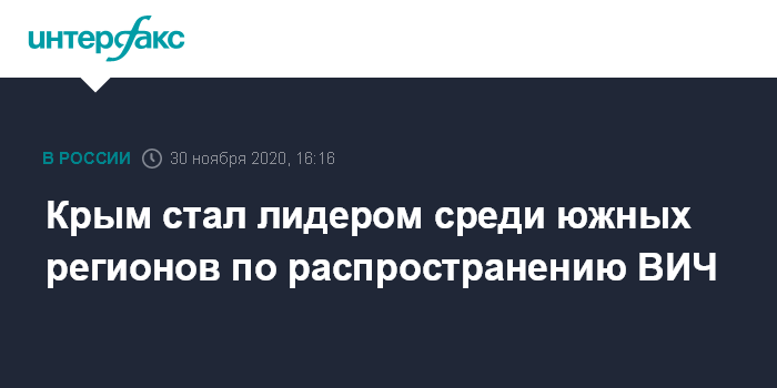 Москва. 30 ноября. INTERFAX.RU - Уровень распространения ВИЧ-инфекции в Крыму самый высокий среди субъектов Южного и Северо-Кавказского федеральных округов, сообщил главный врач республиканского Центра профилактики и борьбы со СПИДом Александр Немыкин.