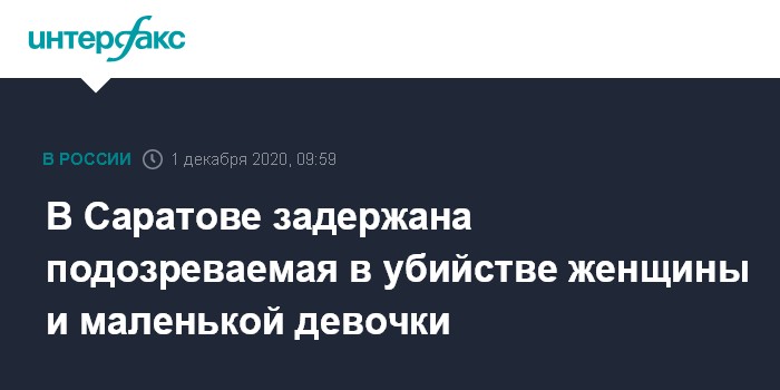 Москва. 1 декабря. INTERFAX.RU - В Саратове задержана подозреваемая в убийстве 38-летней женщины и ее четырехлетней дочери, сообщили в Следственном комитете.