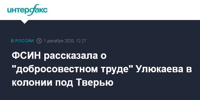 ФСИН рассказала о "добросовестном труде" Улюкаева в колонии под Тверью