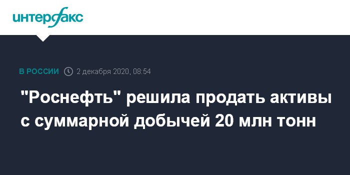 "Роснефть" решила продать активы с суммарной добычей 20 млн тонн
