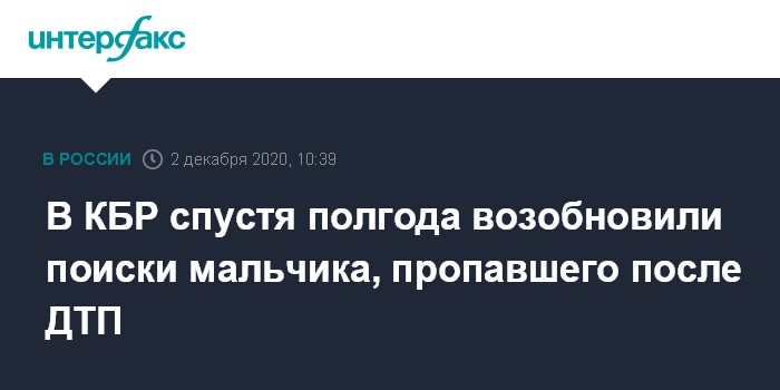 Москва. 2 декабря. INTERFAX.RU - Спасатели возобновили поиски 14-летнего подростка - третьего пассажира автомобиля, в конце июня упавшего в ущелье горной реки в Эльбрусском районе Кабардино-Балкарии, сообщает ГУ МЧС по республике.