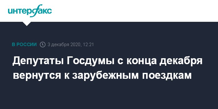 Депутаты Госдумы с конца декабря вернутся к зарубежным поездкам