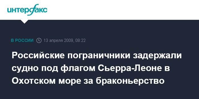 Российские пограничники задержали судно под флагом Сьерра-Леоне в Охотском море за браконьерство