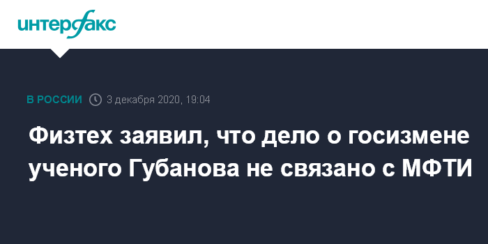 Физтех заявил, что дело о госизмене ученого Губанова не связано с МФТИ