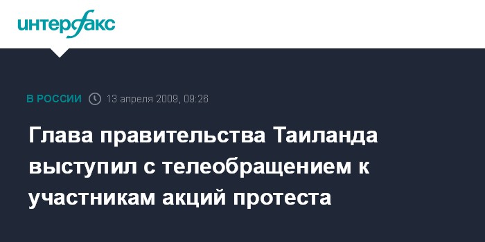 Москва. 13 апреля. INTERFAX.RU - Премьер-министр Таиланда Абхисит Ветчачива в понедельник выступил с телеобращением к участникам антиправительственных выступлений, в котором призвал их уйти с улиц Бангкока.