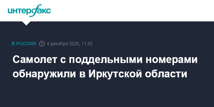Москва. 4 декабря. INTERFAX.RU - Полиция в Иркутской области возбудила уголовное дело по факту подделки государственных регистрационных номеров на самолете, сообщает Восточно-Сибирская транспортная прокуратура.