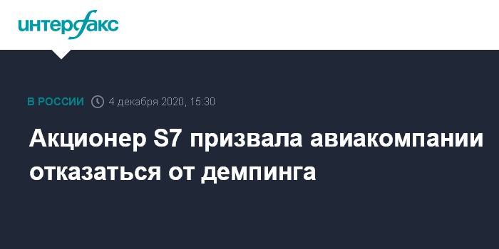 Акционер S7 призвала авиакомпании отказаться от демпинга