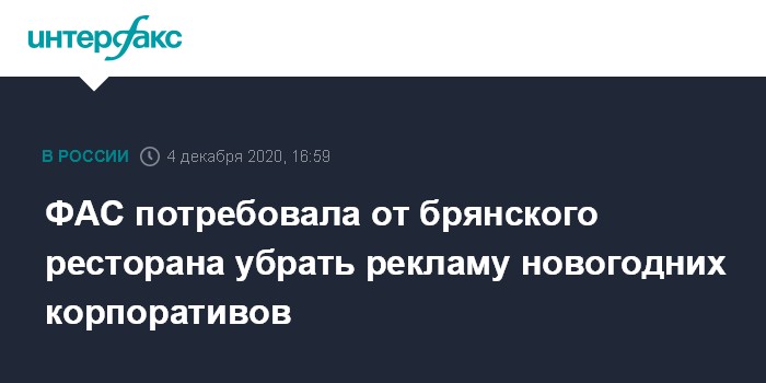 ФАС потребовала от брянского ресторана убрать рекламу новогодних корпоративов