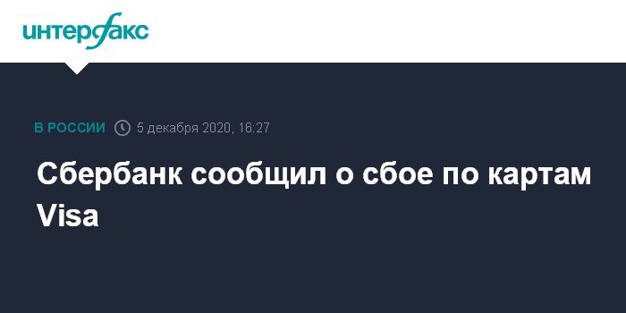 Москва. 5 декабря. INTERFAX.RU - Сбербанк сообщил о зафиксированном в субботу сбое по картам Visa, неполадки уже устранены.