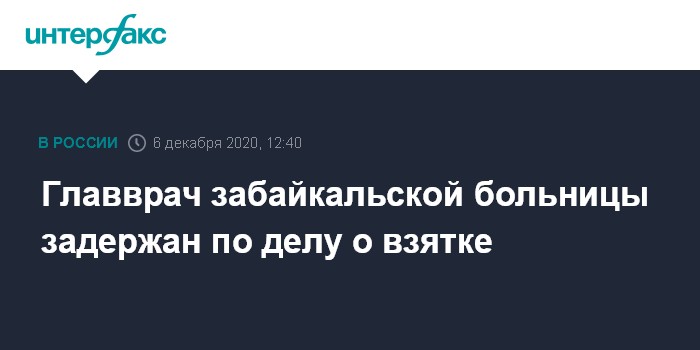 Москва. 6 декабря. INTERFAX.RU - Главный врач краевой клинической больницы в Забайкальском крае Виктор Шальнев задержан по подозрению во взяточничестве, сообщает пресс-служба Следственного управления СК РФ по краю.