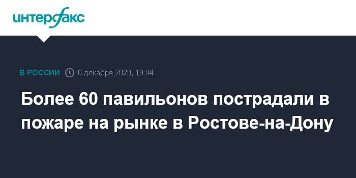 Более 60 павильонов пострадали в пожаре на рынке в Ростове-на-Дону