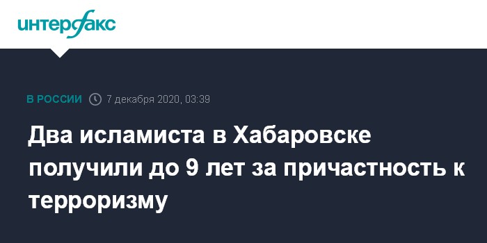 Два исламиста в Хабаровске получили до 9 лет за причастность к терроризму
