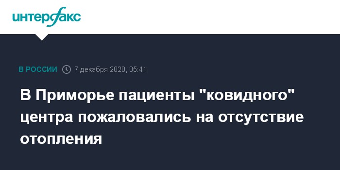 Москва. 7 декабря. INTERFAX.RU - Пациенты медицинского центра по лечению коронавирусной инфекции в городе Дальнегорске Приморского края вынуждены находиться в больнице без отопления, обогревателей, дверей и розеток, температура в помещении опускается до +10 градусов.