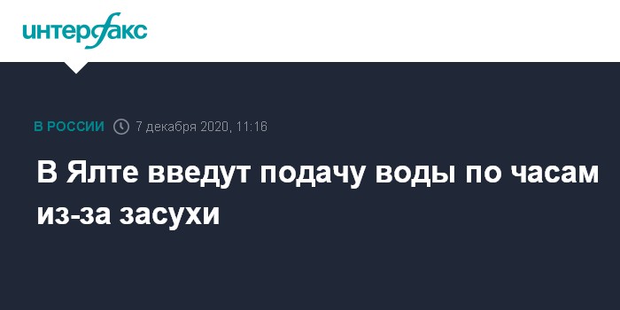 Москва. 7 декабря. INTERFAX.RU - Ограничения подачи воды вводятся со следующей недели для жителей и гостей Ялты.