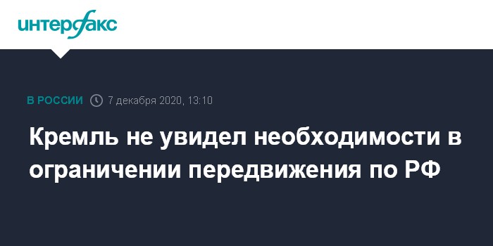 Кремль не увидел необходимости в ограничении передвижения по РФ