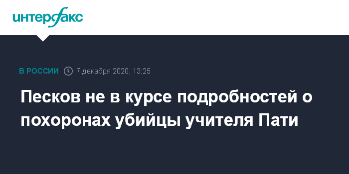 Песков не в курсе подробностей о похоронах убийцы учителя Пати