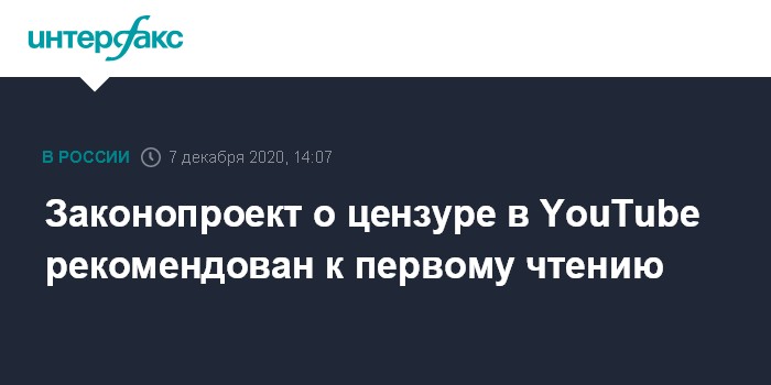 Законопроект о цензуре в YouTube рекомендован к первому чтению