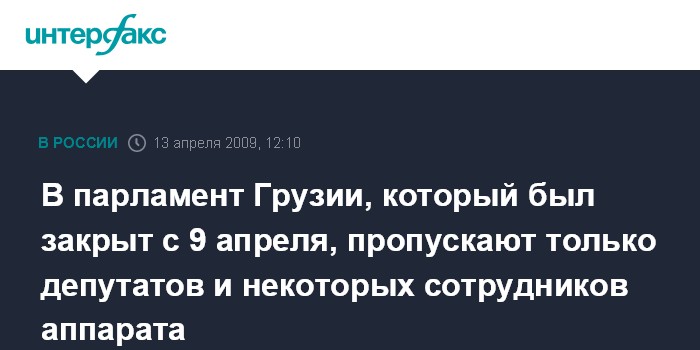 Москва. 13 апреля. INTERFAX.RU - Парламент Грузии, который был закрыт с 9 апреля, когда на площади перед его зданием на проспекте Руставели в центре Тбилиси начались массовые акции протеста, с понедельника начал работу в ограниченном режиме.