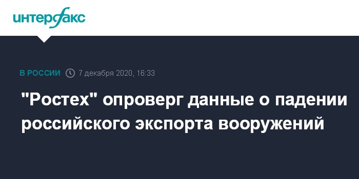Москва. 7 декабря. INTERFAX.RU - В "Ростехе" заявляют, что не согласны с данными Стокгольмского международного института исследований проблем мира (SIPRI) о падении российского экспорта вооружений и техники.