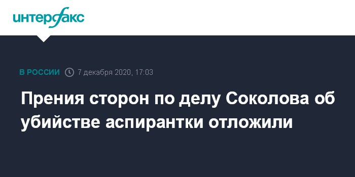 Москва. 7 декабря. INTERFAX.RU - Октябрьский суд Петербурга изменил дату прений по делу об убийстве аспирантки Санкт-Петербургского государственного университета (СПбГУ) Анастасии Ещенко, в котором обвиняется ее преподаватель и сожитель Олег Соколов.