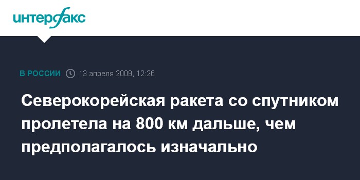 Москва. 13 апреля. INTERFAX.RU - Специалисты южнокорейской, японской и американской разведок продолжают изучать результаты запуска северокорейского спутника 5 апреля на фоне появившихся заявлений о том, что ракета-носитель пролетела намного дальше, чем предполагалось изначально, сообщает в понедельник газета "Чосон ильбо".