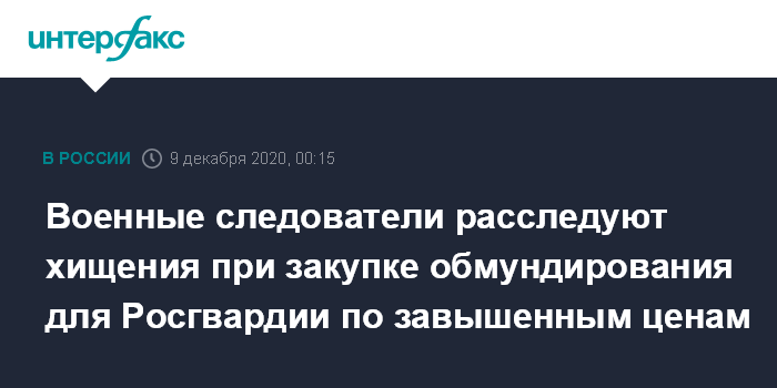 Москва. 9 декабря. INTERFAX.RU - Уголовное дело о мошенничестве возбуждено по факту закупок обмундирования для Росгвардии в 2017-2019 годах, сообщил "Интерфаксу" осведомленный источник.