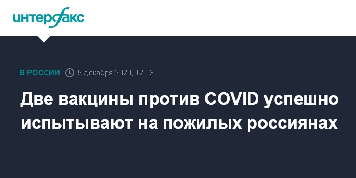Москва. 9 декабря. INTERFAX.RU - Глава Роспотребнадзора Анна Попова сообщила, что испытания двух российских вакцин против коронавируса на людях старше 60 лет проходят успешно.