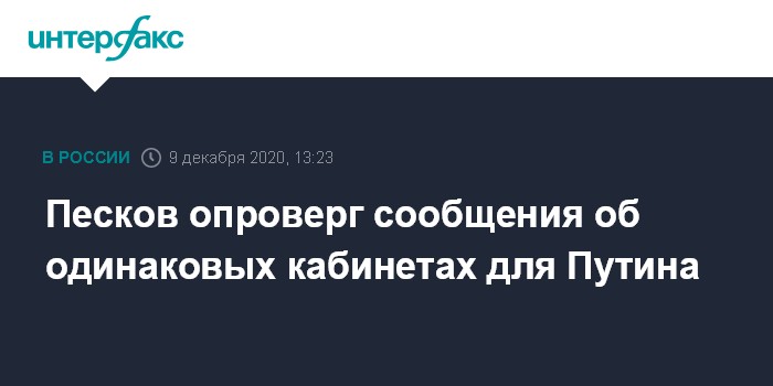 Москва. 9 декабря. INTERFAX.RU - Пресс-секретарь президента Дмитрий Песков назвал недостоверной информацию о наличии у главы государства двух одинаковых кабинетов в резиденциях в Ново-Огарево и в Сочи.