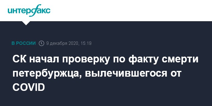 СК начал проверку по факту смерти петербуржца, вылечившегося от COVID