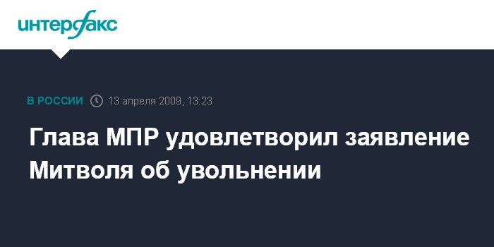 Глава МПР удовлетворил заявление Митволя об увольнении