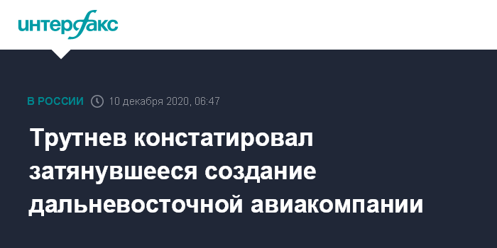 Москва. 10 декабря. INTERFAX.RU - Создание авиакомпании для перевозок на Дальнем Востоке РФ затягивается, сказал вице-премьер, полпред президента России в Дальневосточном федеральном округе (ДФО) Юрий Трутнев в четверг во Владивостоке на заседании совета при полпреде.