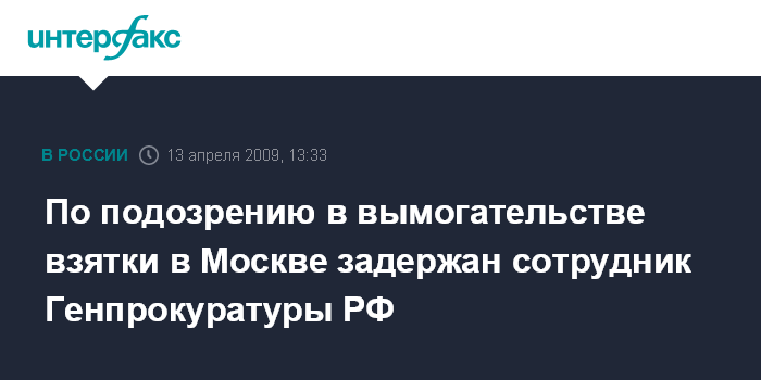 По подозрению в вымогательстве взятки в Москве задержан сотрудник Генпрокуратуры РФ