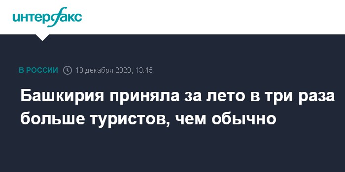 Москва. 10 декабря. INTERFAX.RU - Число посетивших летом 2020 года Башкирию туристов возросло в три раза на фоне коронавирусных ограничений, сообщил глава республики Радий Хабиров на Международной неделе бизнеса в Уфе в четверг.