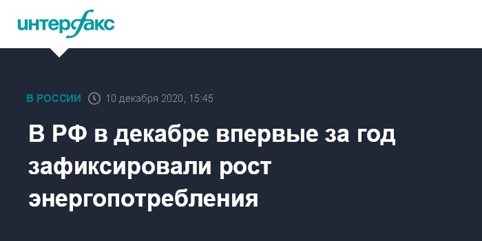 Москва. 10 декабря. INTERFAX.RU - Декабрь стал первым месяцем в 2020 году, когда Минэнерго РФ фиксирует рост энергопотребления, сообщил журналистам замминистра энергетики Евгений Грабчак.