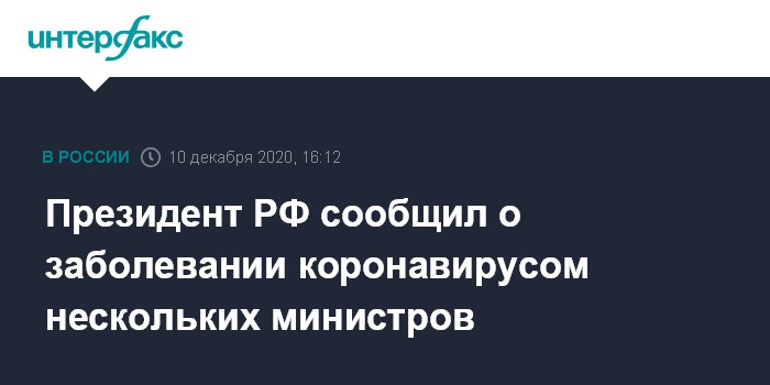 Москва. 10 декабря. INTERFAX.RU - Некоторые министры российского правительства в настоящее время болеют коронавирусом, но продолжают работать из дома или больничных палат, рассказал президент РФ Владимир Путин.