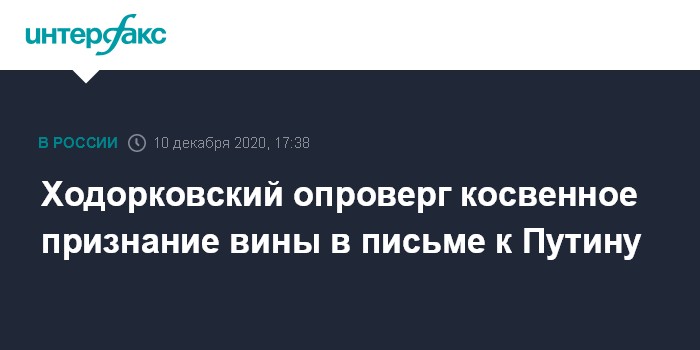 Москва. 10 декабря. INTERFAX.RU - Бизнесмен Михаил Ходорковский в ответ на слова президента Владимира Путина о косвенном признании вины в прошении о помиловании в 2013 году заявил, что никогда этого не делал.