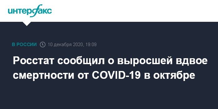 Москва. 10 декабря. INTERFAX.RU - Смертность от коронавируса в России в октябре выросла больше, чем в два раза, и составила 22,5 тыс. случаев, свидетельствуют данные Росстата.