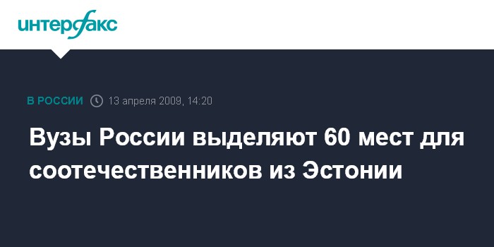 Таллин. 13 апреля. INTERFAX.RU - Ряд российских вузов готовы принять в число своих студентов соотечественников, проживающих в Эстонии.
