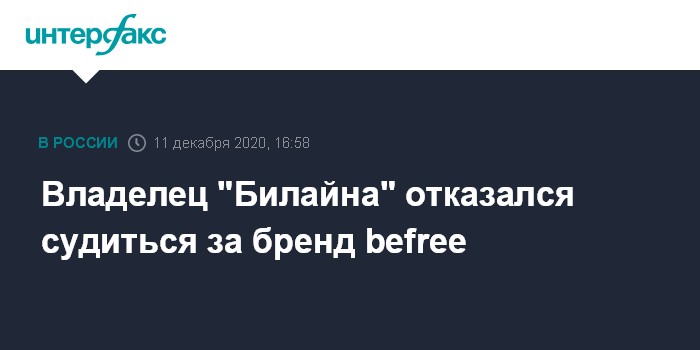 Москва. 11 декабря. INTERFAX.RU - Суд по интеллектуальным правам 11 декабря зарегистрировал ходатайства компании VEON Amsterdam BV об отказе от исков к торговому АО "Мэлон Фэшн Груп" (Санкт-Петербург) о досрочном прекращении охраны знаков "befree" (№227951 и №622840), следует из картотеки суда.