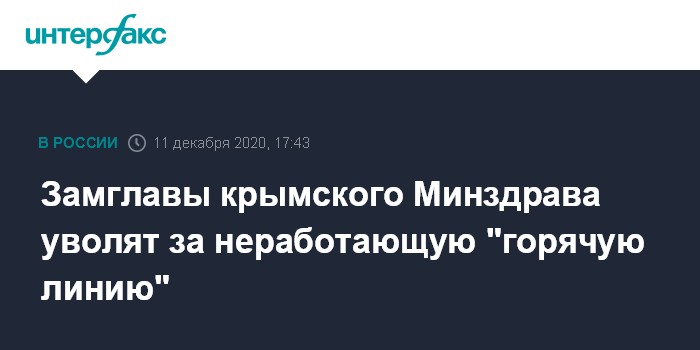 Москва. 11 декабря. INTERFAX.RU - Власти Крыма выявили неработающие "горячие линии" госпредприятий и министерства здравоохранения республики и решили наказать ответственных за это чиновников, в том числе уволить заместителя главы Минздрава республики.
