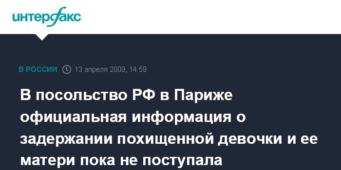 В посольство РФ в Париже официальная информация о задержании похищенной девочки и ее матери пока не поступала