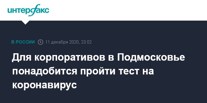 Для корпоративов в Подмосковье понадобится пройти тест на коронавирус