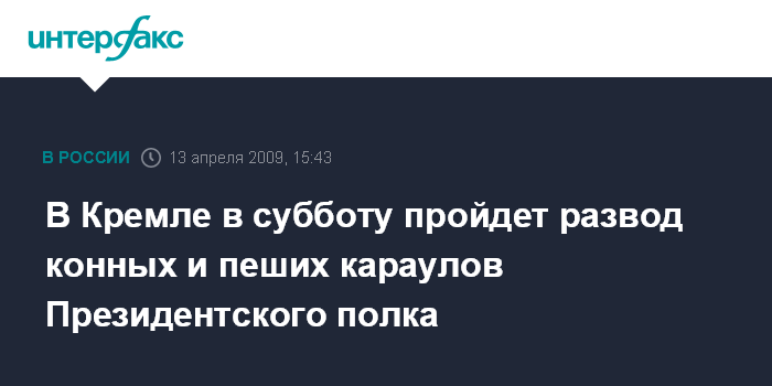 Москва. 13 апреля. INTERFAX.RU - В ближайшую субботу в полдень на Соборной площади Кремля состоится открытие пятого сезона парадных разводов конных и пеших караулов Президентского полка, сообщили "Интерфаксу" в Центре по связям с прессой ФСО РФ.