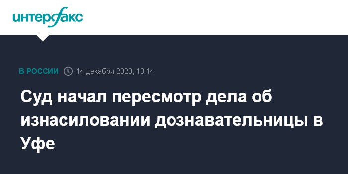 Москва. 14 декабря. INTERFAX.RU - Новое апелляционное рассмотрение резонансного дела об изнасиловании дознавательницы в отделе полиции Уфы началось в Верховном суде Башкирии в понедельник, передает корреспондент "Интерфакса" из зала суда.