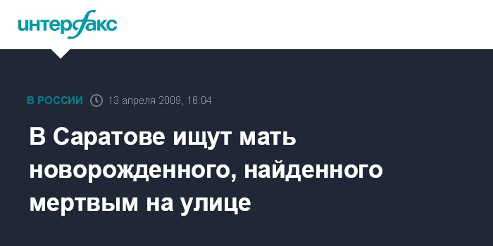 Как сообщил в понедельник агентству "Интерфакс" и.о. руководителя следственного отдела по Заводскому району Саратова СУ СКП РФ по Саратовской области Николай Иванов, мертвого малыша накануне нашли прохожие.