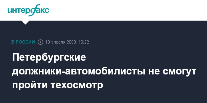 Санкт-Петербург. 13 апреля. INTERFAX.RU - Петербургские автовладельцы, имеющие долги, с апреля не смогут пройти гостехосмотр.